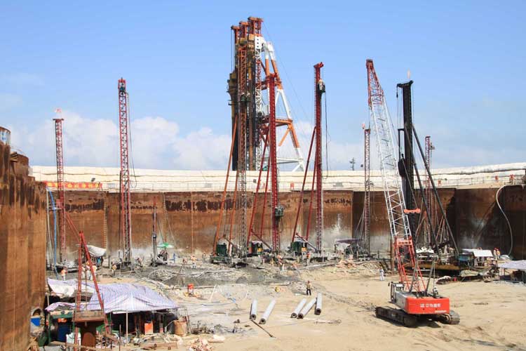三軸高壓旋噴樁施工過程中,測放樁位:根據圖紙要求,確定樁位時應準確復核,樁位打入木樁或短鋼筋進行標記。